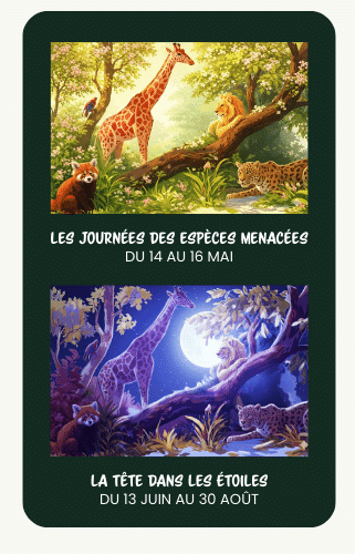 Passez une nuit à la belle étoile au milieu des animaux du Parc ! Choisissez votre animal préféré et dormez dans une chambre éphémère dans le Parc avec vue sur les girafes, les tigres ou encore les panthères de l’Amour !